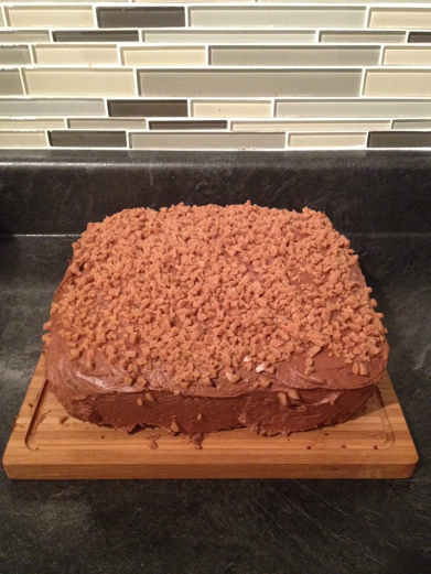 After we got back home I decided to do something I haven't done in so long - I baked! I promised hubby a couple weeks ago that I would bake him a chocolate cake with Skor bites plus I have wanted to try a layered cake for a while. Saturday night baking with a drink is so fun for me and I find it really relaxing as opposed to cooking where I always feel like the donkey in Gordon Ramsay's pressure test! So I decided to bake both cakes.